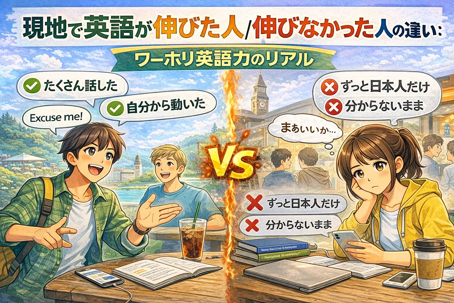 一方で、同じ期間ワーホリをしていても、「かなり英語が話せるようになった人」と「思ったほど伸びなかった人」がはっきり分かれるのも事実です。